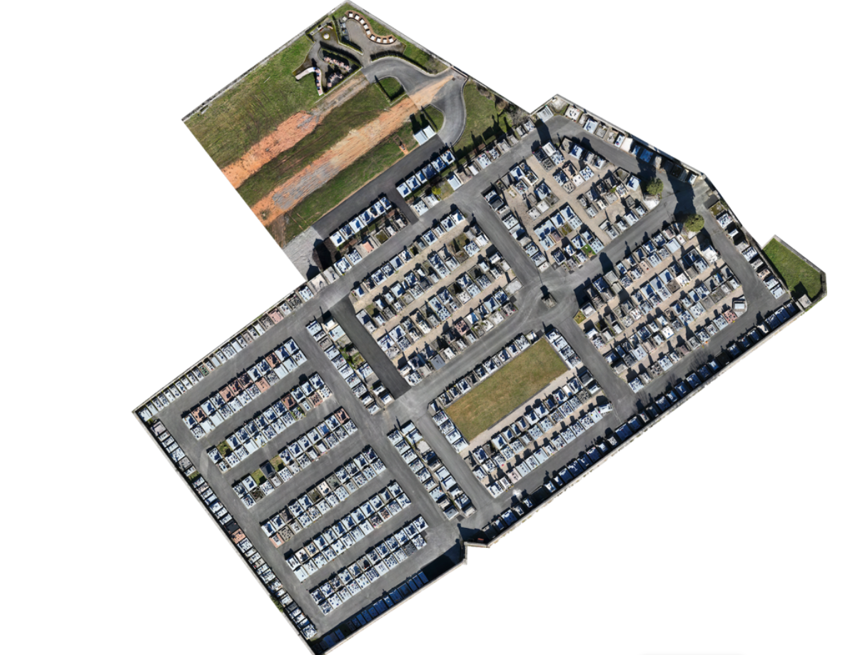 Grâce à la captation par drone et à la création d’orthophotos haute précision, chaque cimetière peut être modélisé avec fidélité et intégré dans des outils numériques intuitifs.